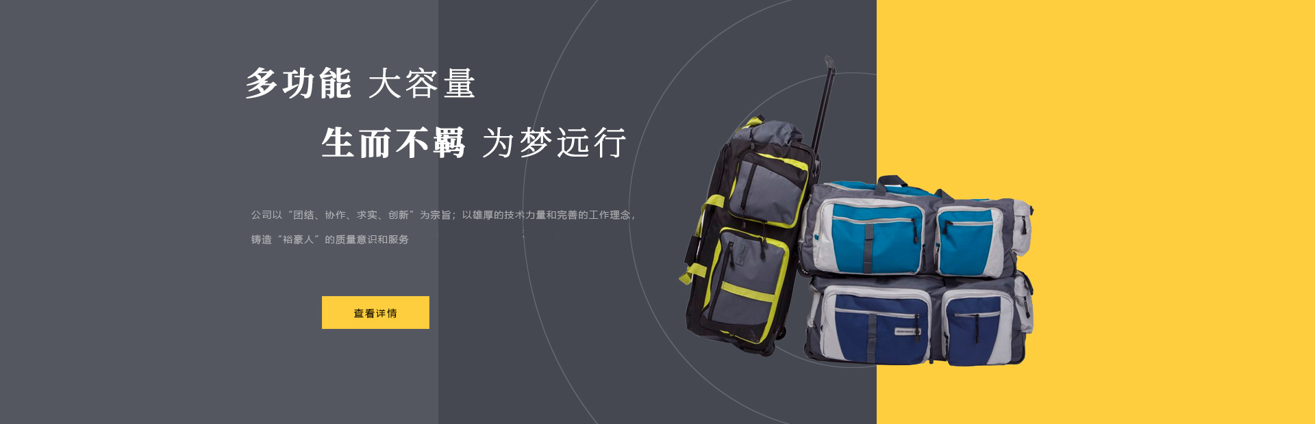 本公司是一家集設計,制造,加工,貿易為一體的專業(yè)箱包生產(chǎn)出口企業(yè)。已有20多年箱包生產(chǎn)經(jīng)驗。公司廠區(qū)位于中國浙江省海寧市鹽官工業(yè)園區(qū),占地15000平方米,建筑面積10000平方米,員工150人,年生產(chǎn)能力260萬只(套)。 公司以尼龍,滌淪,牛津布,P...